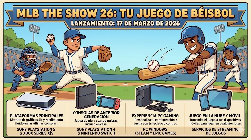 MLB The Show 26 está disponible en una variedad de plataformas para que todos los fanáticos puedan disfrutarlo. Estas incluyen PlayStation 5, Xbox Series X|S, Nintendo Switch y, por primera vez, PC. Esto amplía el acceso al juego, permitiendo a los jugadores de diferentes consolas y sistemas disfrutar de la experiencia de beisbol más realista del mercado.