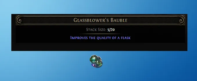 Glassblower's Bauble is a PoE 2 currency item that increases the quality of a flask or tincture. Think of “quality” as a small bonus that makes your flask work a bit better.