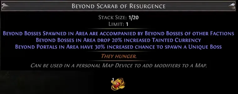• Abyssal Troves and Stygian Spires in your Maps have 10% chance to drop an Abyss Scarab