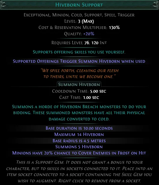 This is a Support Gem. It does not grant a bonus to your character, but to skills in sockets connected to it. Place into an item socket connected to a socket containing the Skill Gem you wish to augment. Right click to remove from a socket. | ![]() |