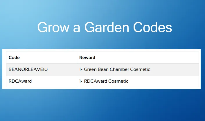Grow a Garden codes are short, time-limited codes released by the developers. When redeemed, they give free cosmetic items or small bonuses. These rewards do not usually affect progression, but they are useful if you like collecting cosmetics or customizing your garden.
