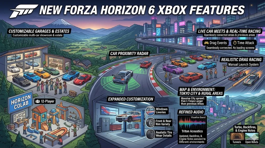 Forza Horizon 6 comes with a massive open-world map set in Japan, featuring dynamic weather, four seasons, and nine distinct regions. This is the first time the Horizon Festival will be set in Japan, and it's going to be epic.